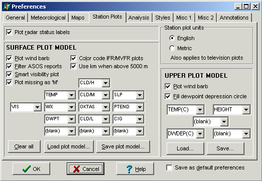 Also see the special topics on Surface plot models, Upper air plot models, and Station filtering. Station filtering has been moved to the Control Panel in Digital Atmosphere versions after 2002.